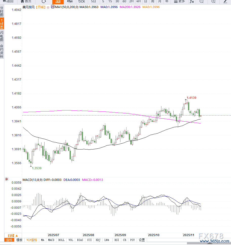 日线结构涌现,好意思元兑加元仍保管在上升趋势通说念中运行,短线多头动能略占优势。9日与20日均线呈多头胪列,标明趋势仍偏强;RSI办法保捏在50上方但无彰着超买信号,反馈高涨节律慈详;
