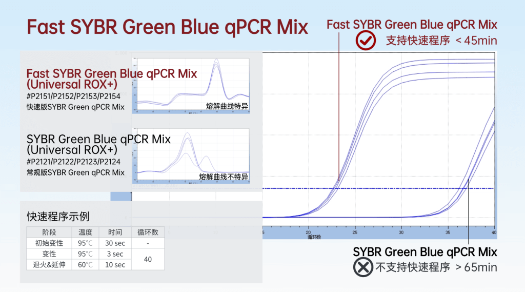 以(yi)Fast Hotstart Taq Polymerase為核(he)心成分的能在45分鐘內(nei)快速完成qPCR反應:
