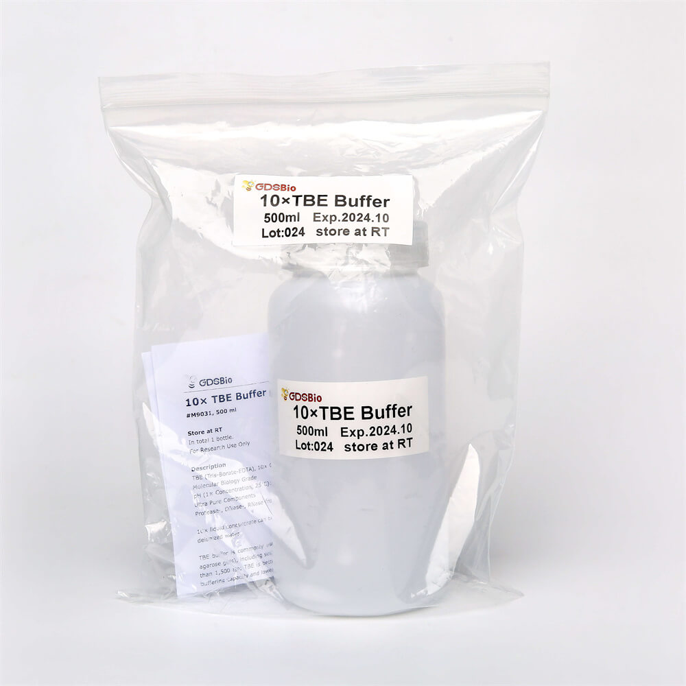 TBE緩沖液存放時間過長容易出現沉淀,影響電泳結果,因此配制為10×,工作時稀釋20倍,濃度為0.5×。